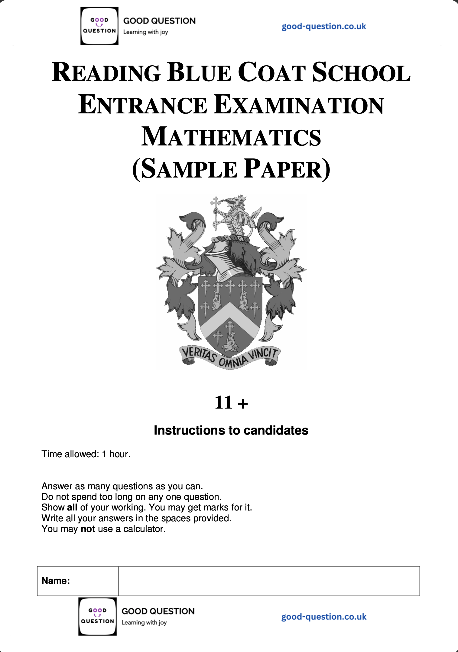 Reading Blue Coat School - Maths Specimen Paper with Answers